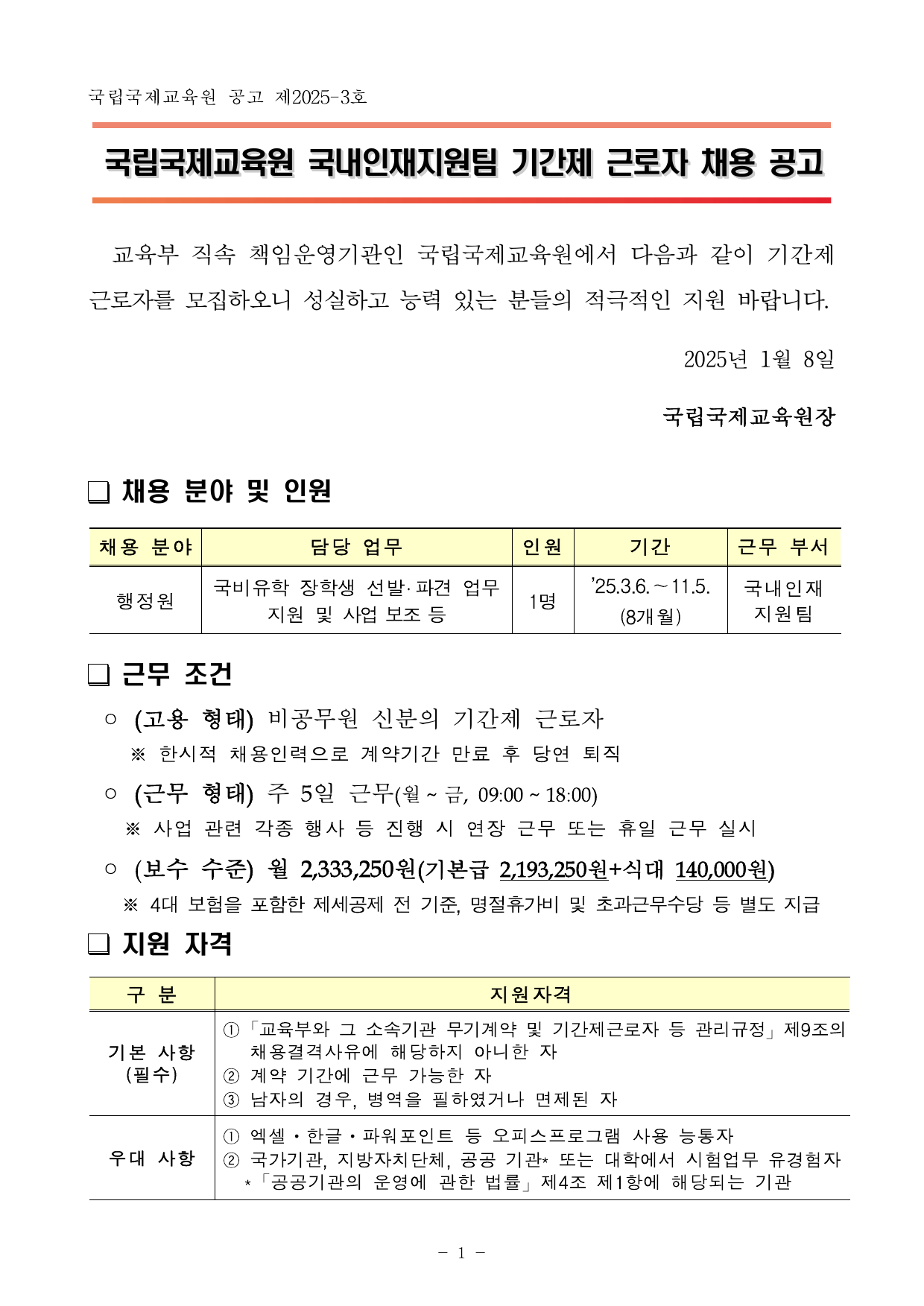 PDF문서2025년 국내인재지원팀 기간제 근로자 채용 공고문.pdf