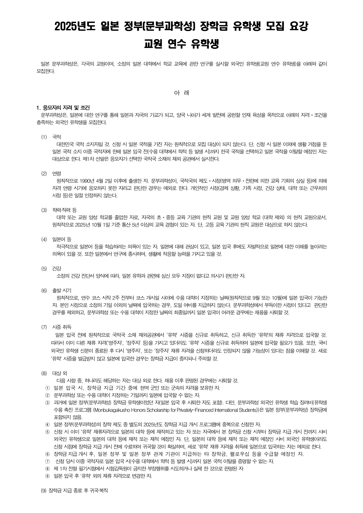 [붙임 1] 2025년도 일본정부(문부과학성) 장학금 유학생 모집요강(교원연수생) 한국어.pdf