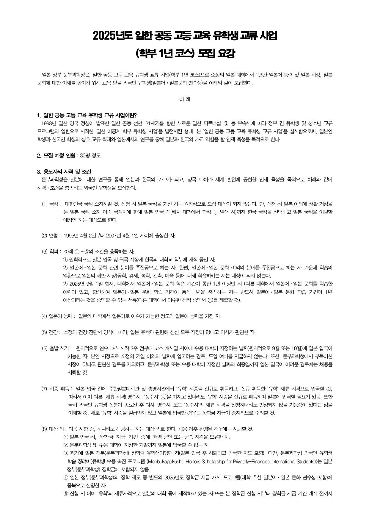 [붙임 1] 2025년도 일한공동 고등교육 유학생교류사업(학부 1년 코스) 모집요강 한국어.pdf