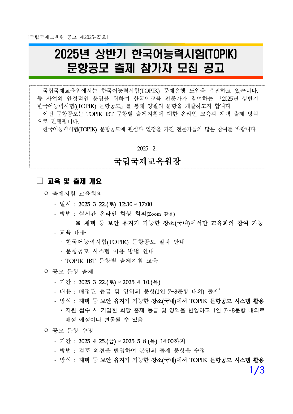 2025년 상반기 한국어능력시험(TOPIK) 문항공모 출제 참가자 모집 공고.pdf