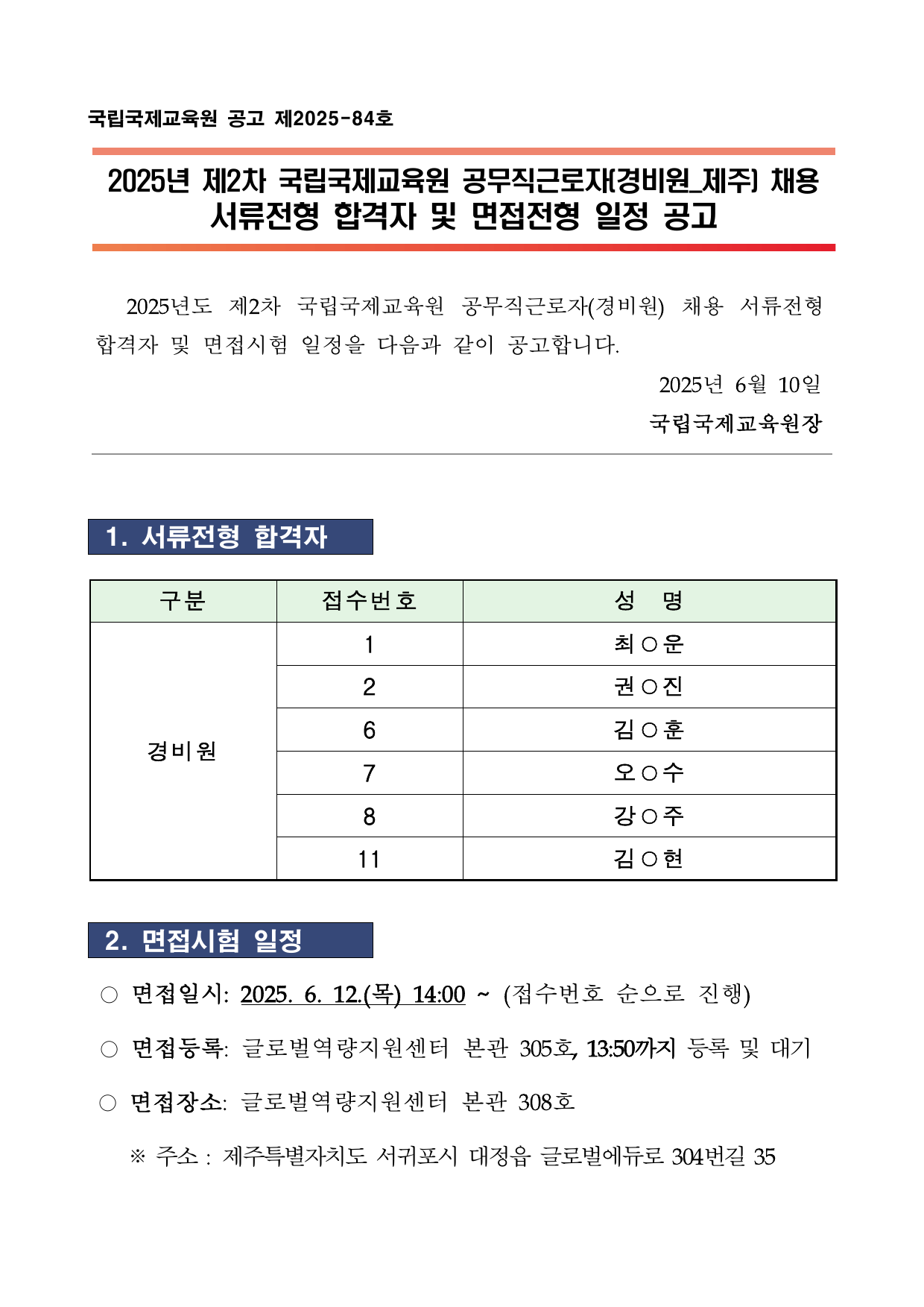 PDF문서제2차 공무직근로자(경비원) 채용 서류전형 합격자 및 면접 일정 공고.pdf