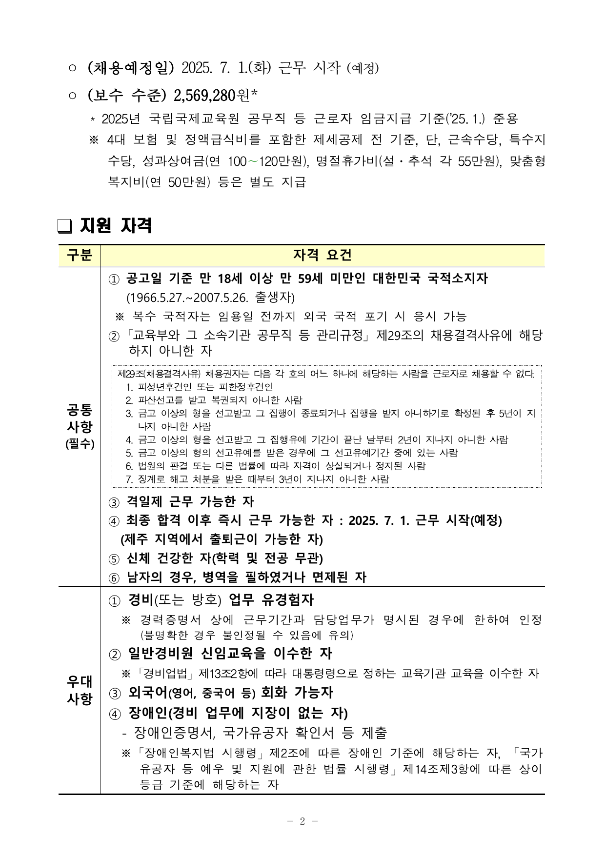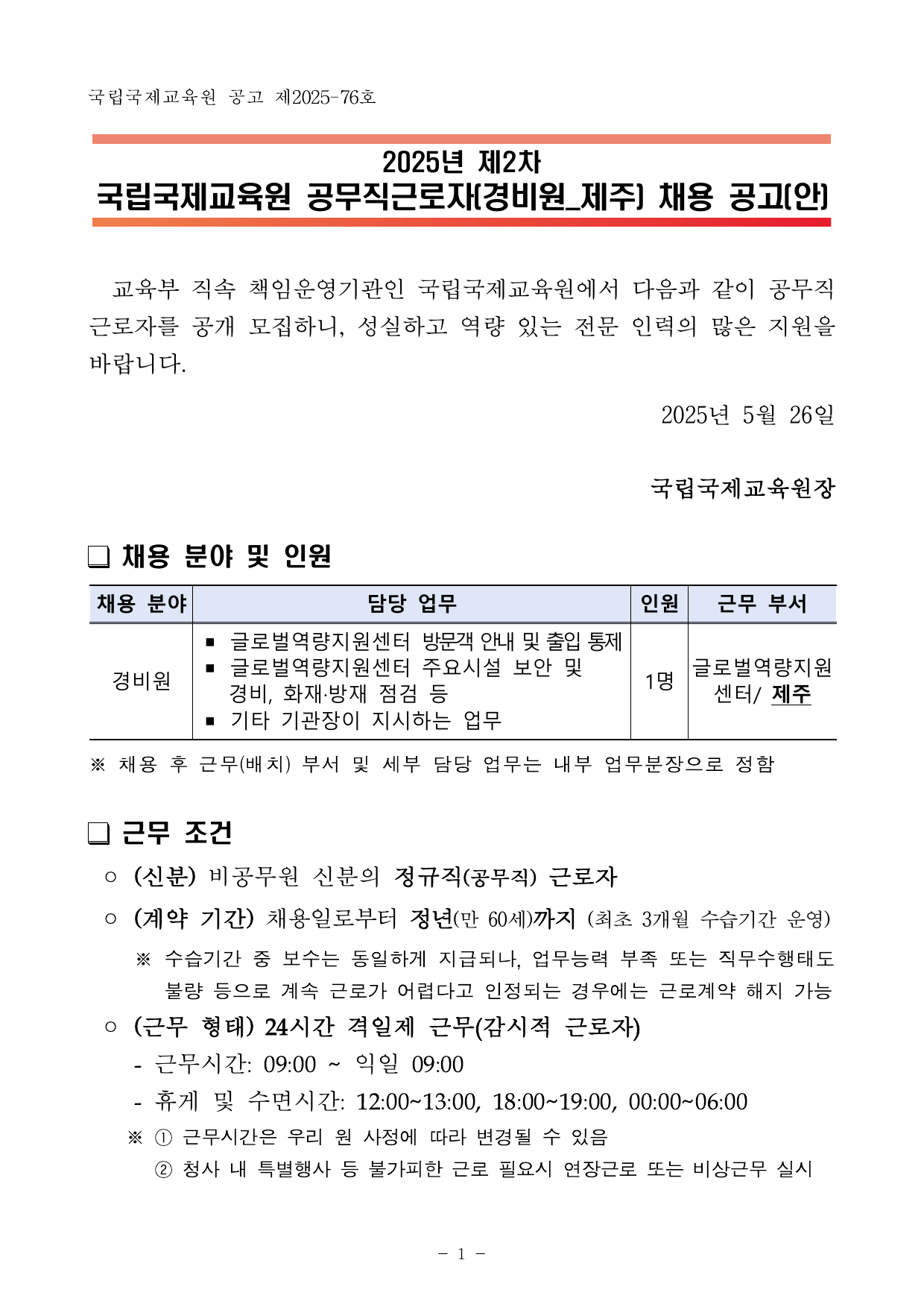 PDF문서2025년 제2차 국립국제교육원 공무직 근로자(경비원_제주) 채용 공고문.pdf