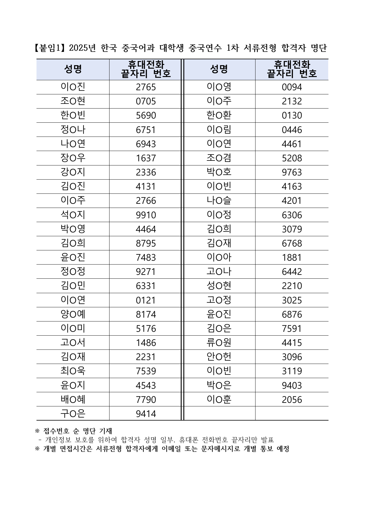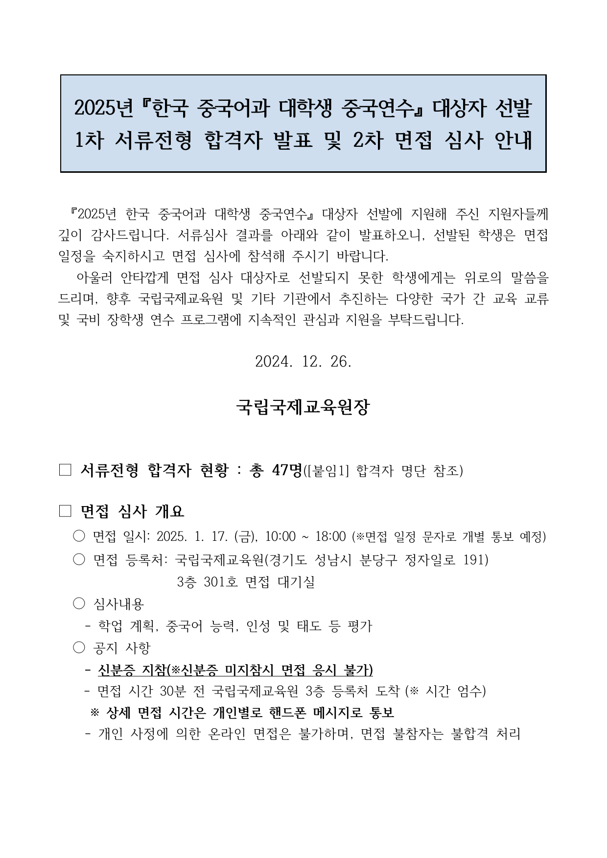 2025 한국 중국어과 대학생 중국연수 1차 서류전형 합격자 및 면접심사 안내문.pdf