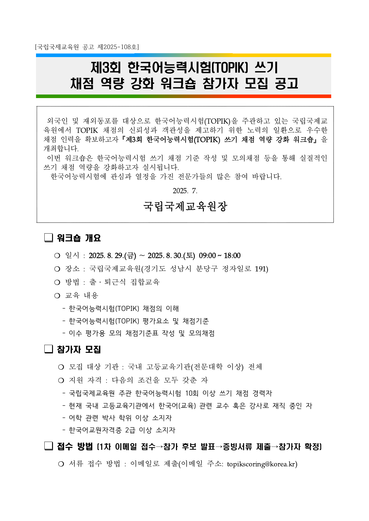 2025년 한국어능력시험 쓰기 채점 역량 강화 워크숍 참가자 모집 공고.pdf