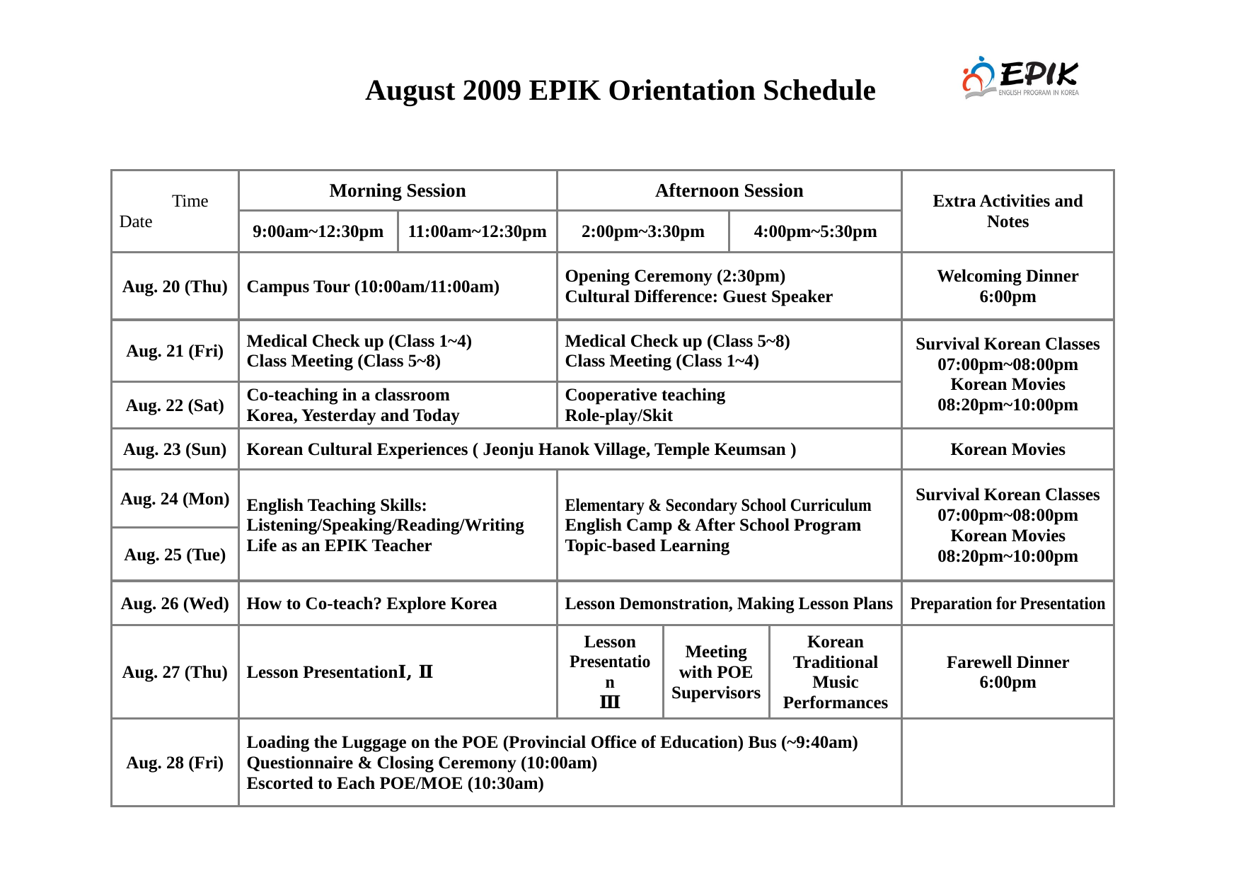August 2009 EPIK Orientation Schedule (Jeonju).doc