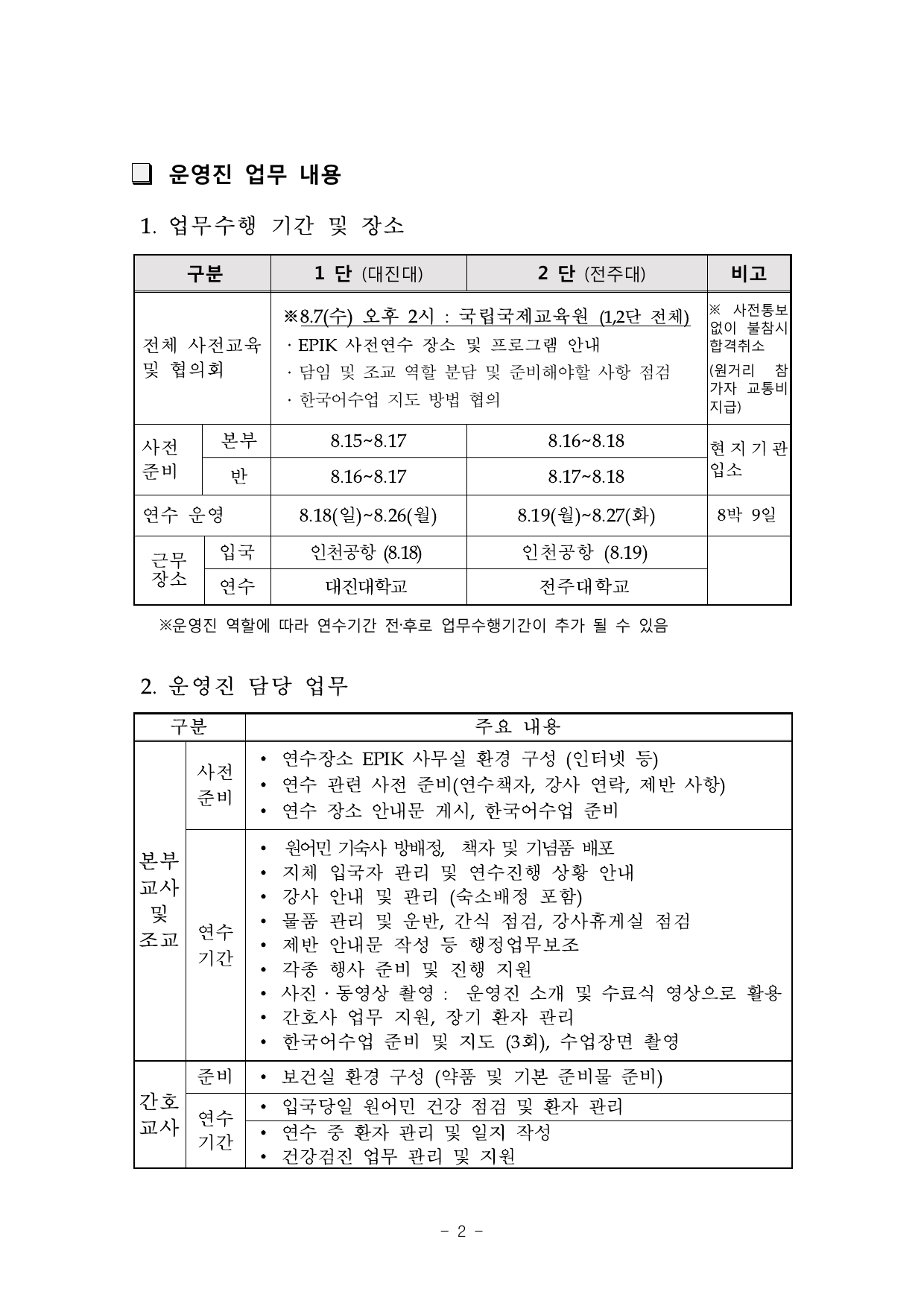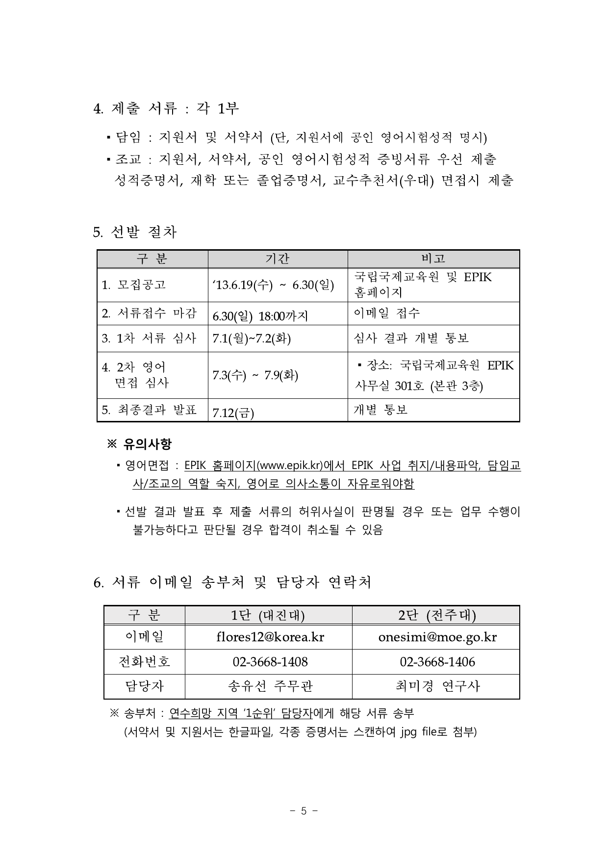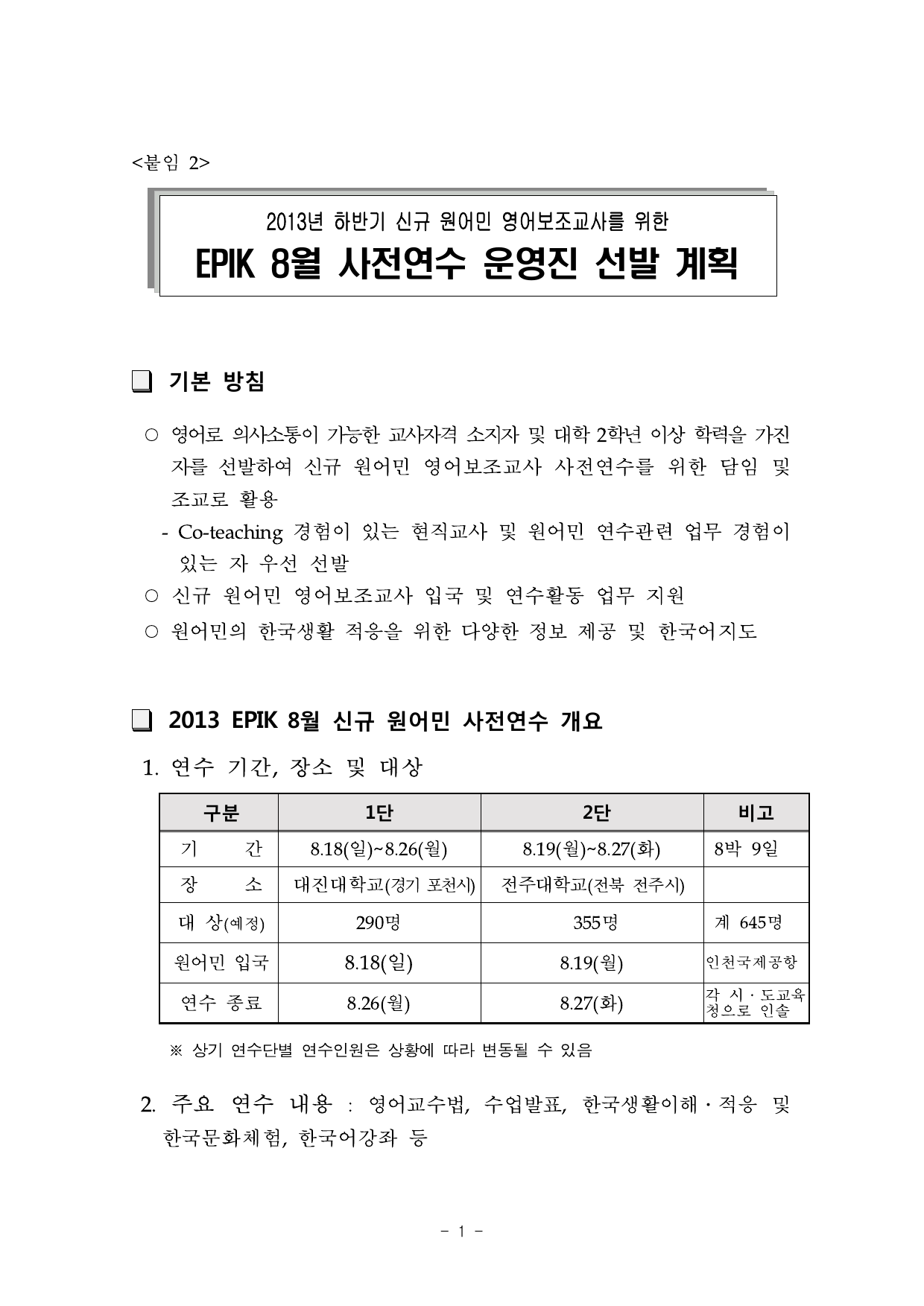 PDF문서붙임 2 -2013 EPIK 8월 사전연수 운영진 선발 계획.pdf