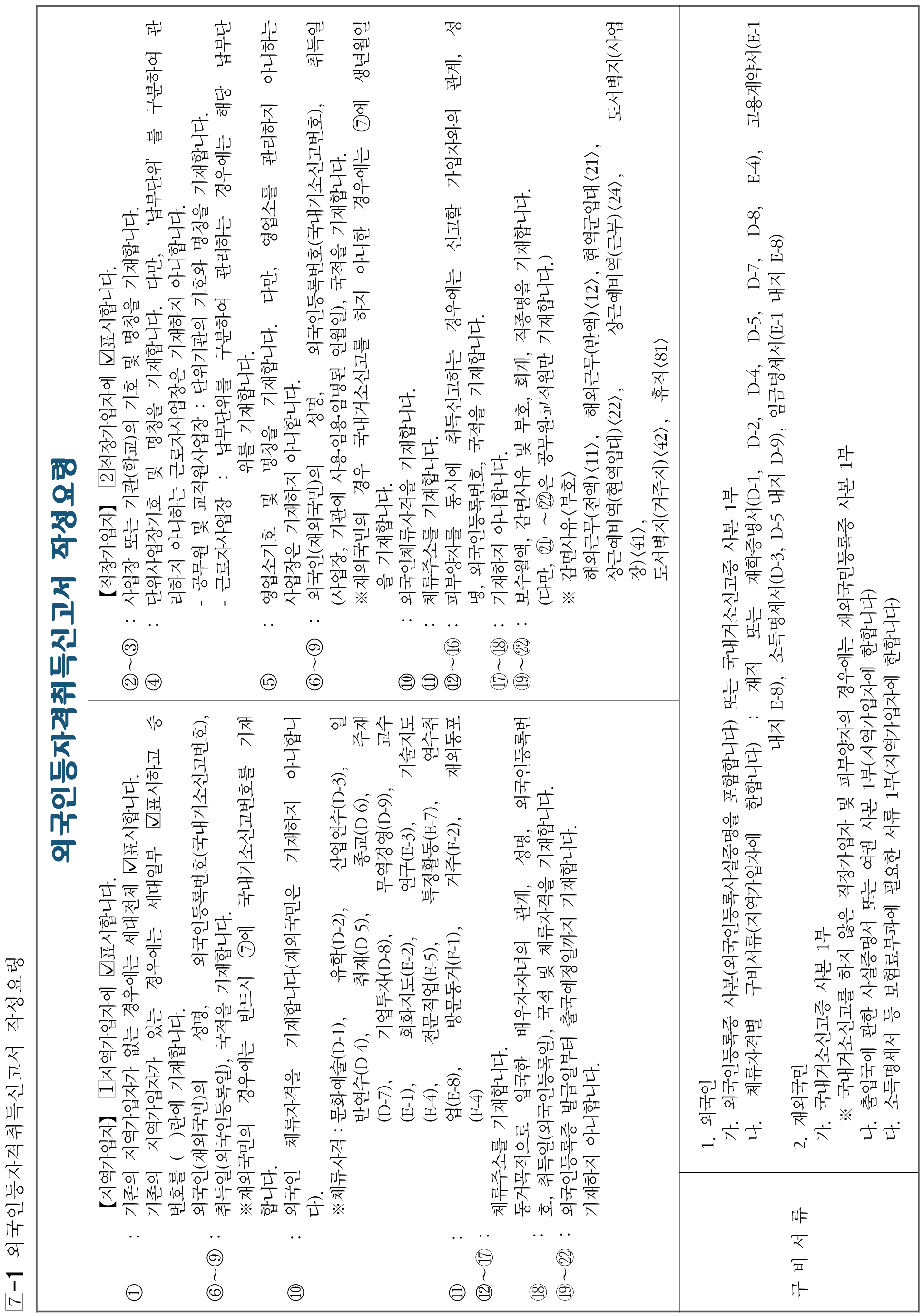 -1 외국인등자격취득신고서 작성요령