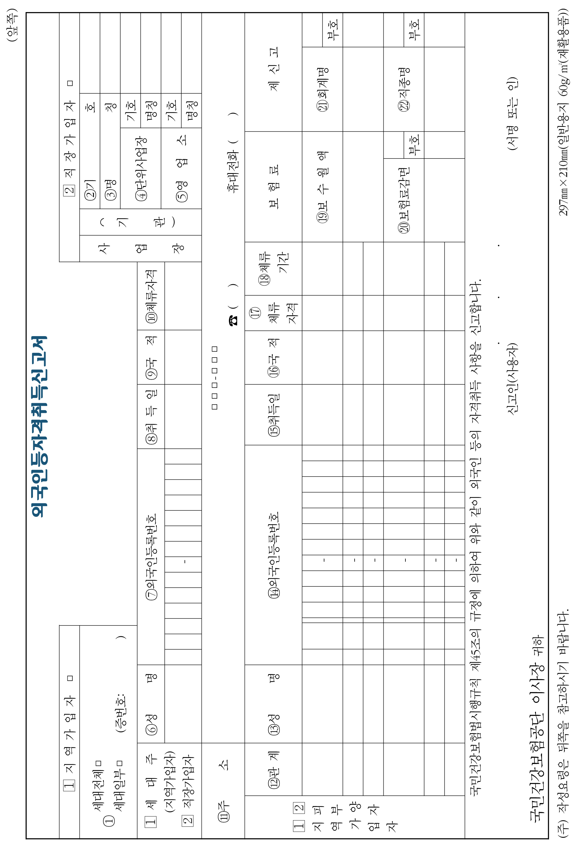 외국인 사업장가입자 자격취득신고서 |