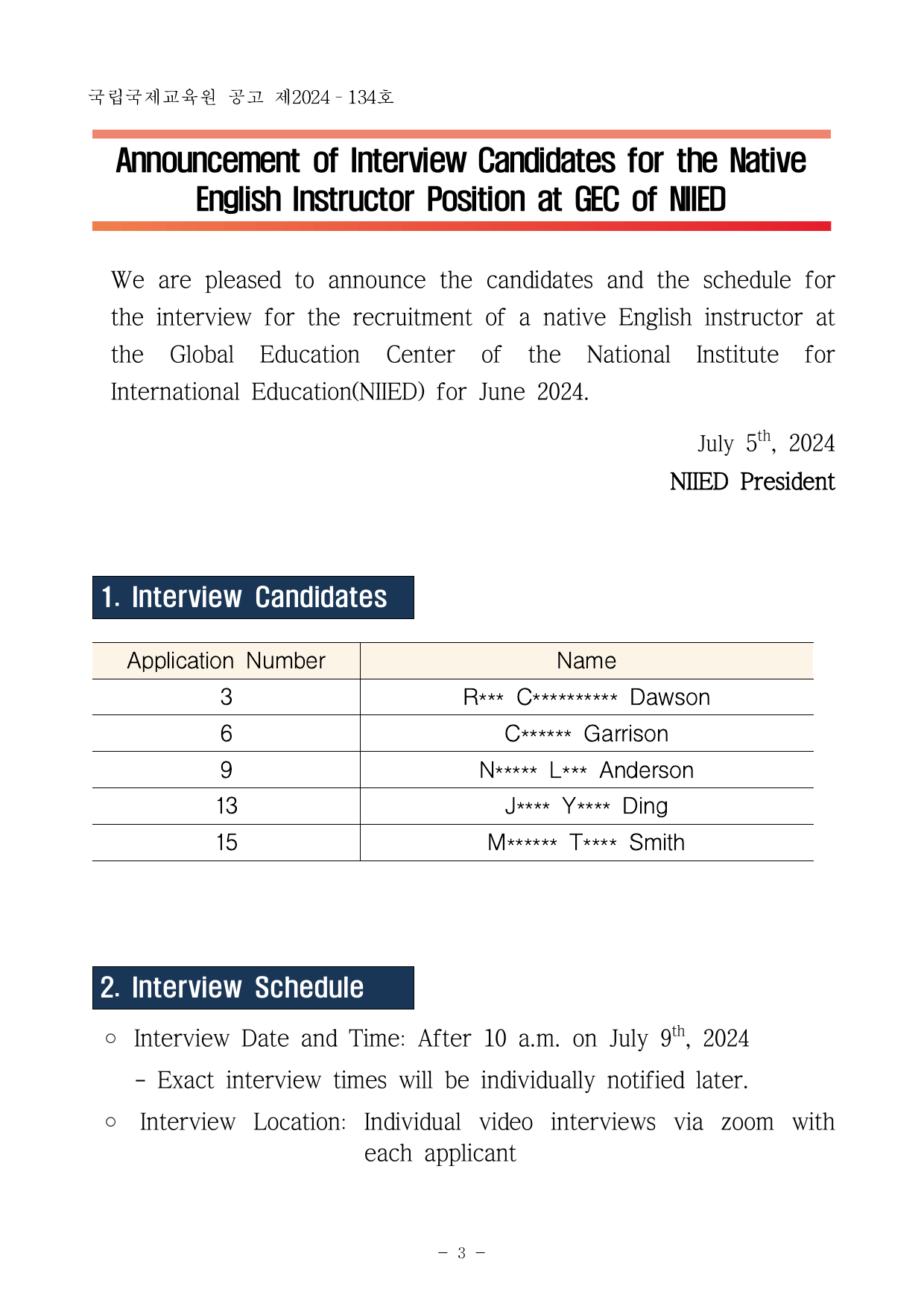 PDF문서2024년 제2차 원어민 강사 서류전형 합격자 및 면접시험 일정 공고.pdf