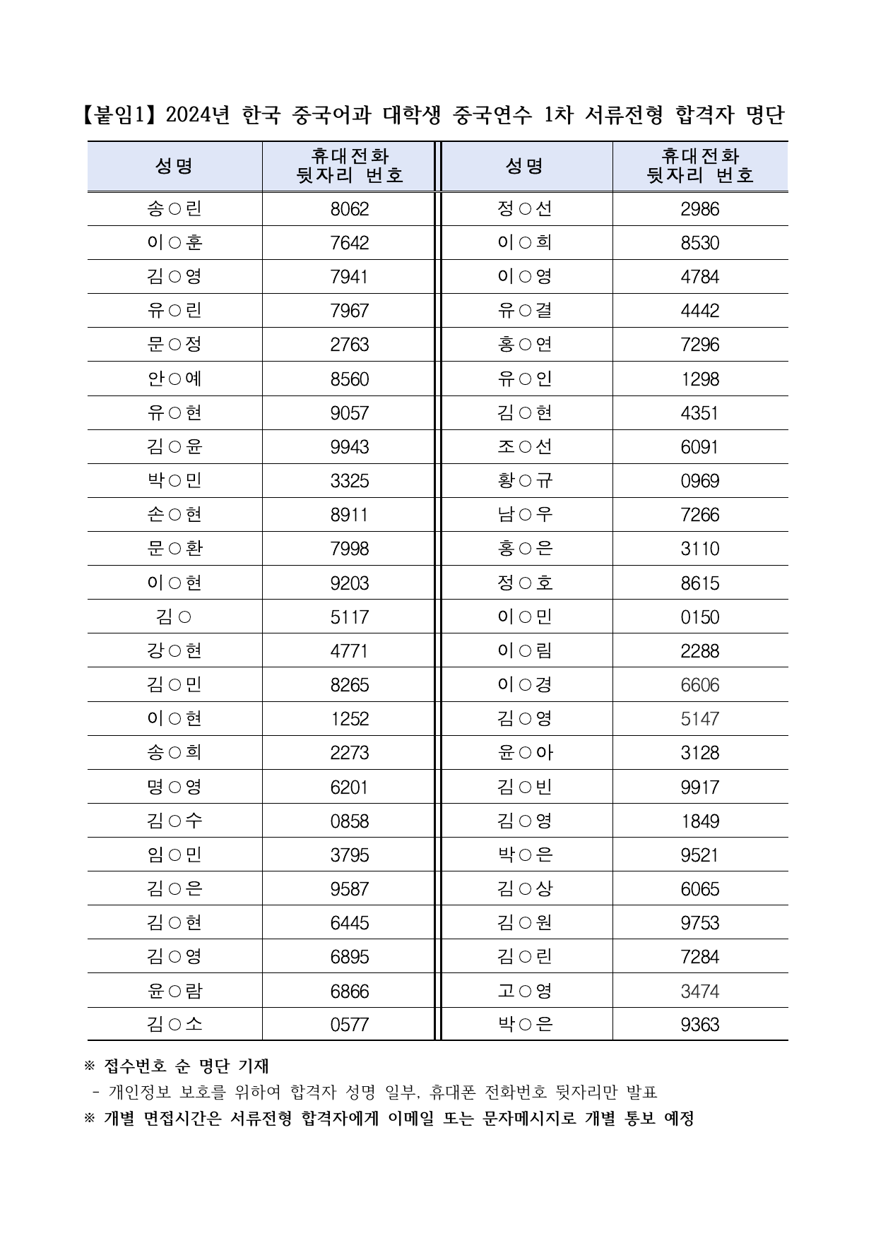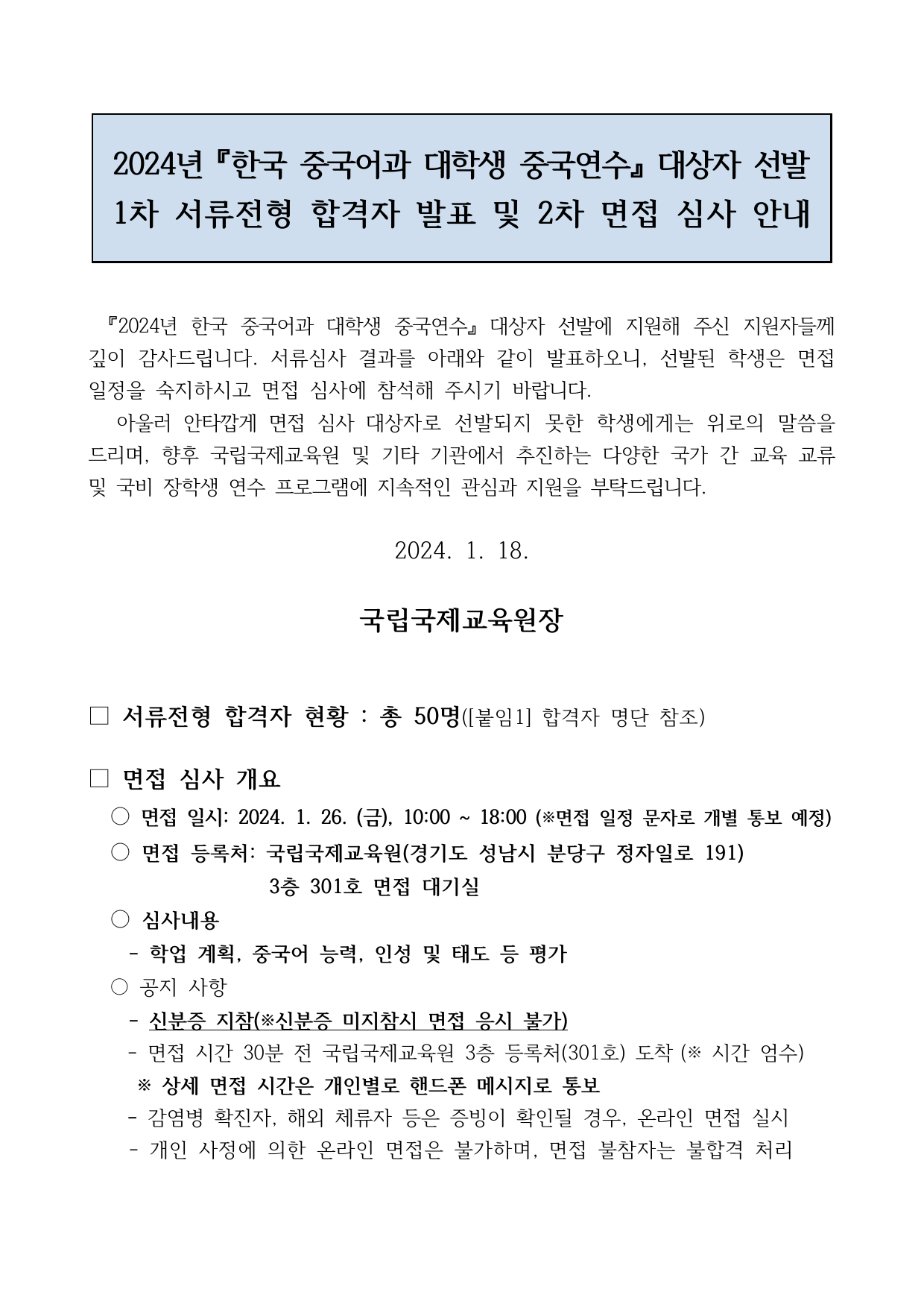 2024 한국 중국어과 대학생 중국연수 1차 서류전형 합격자 및 면접심사 안내문.pdf