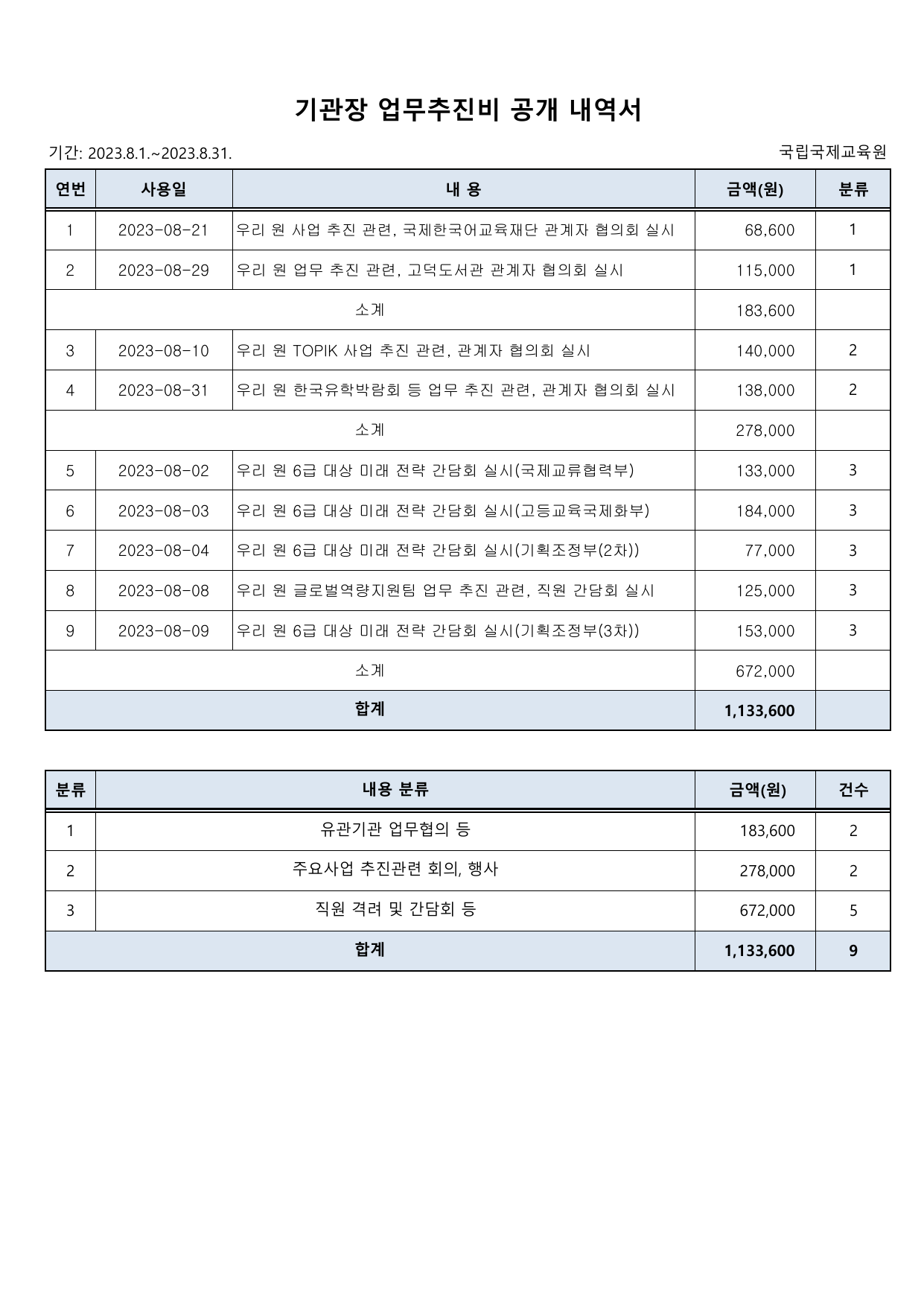 PDF문서국립국제교육원 기관장 업무추진비 내역(2023.8월분).pdf