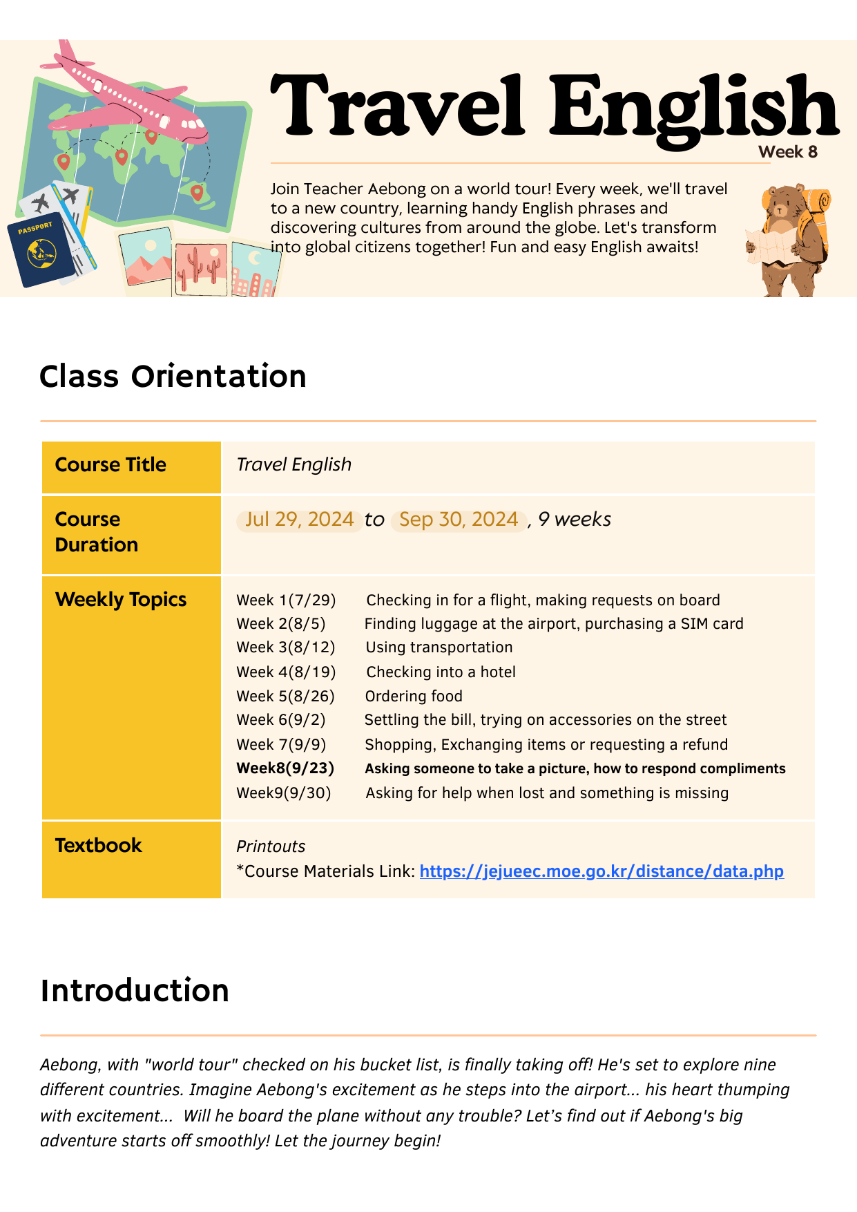 PDF문서Travel English(2차) - 8주차(자료).pdf