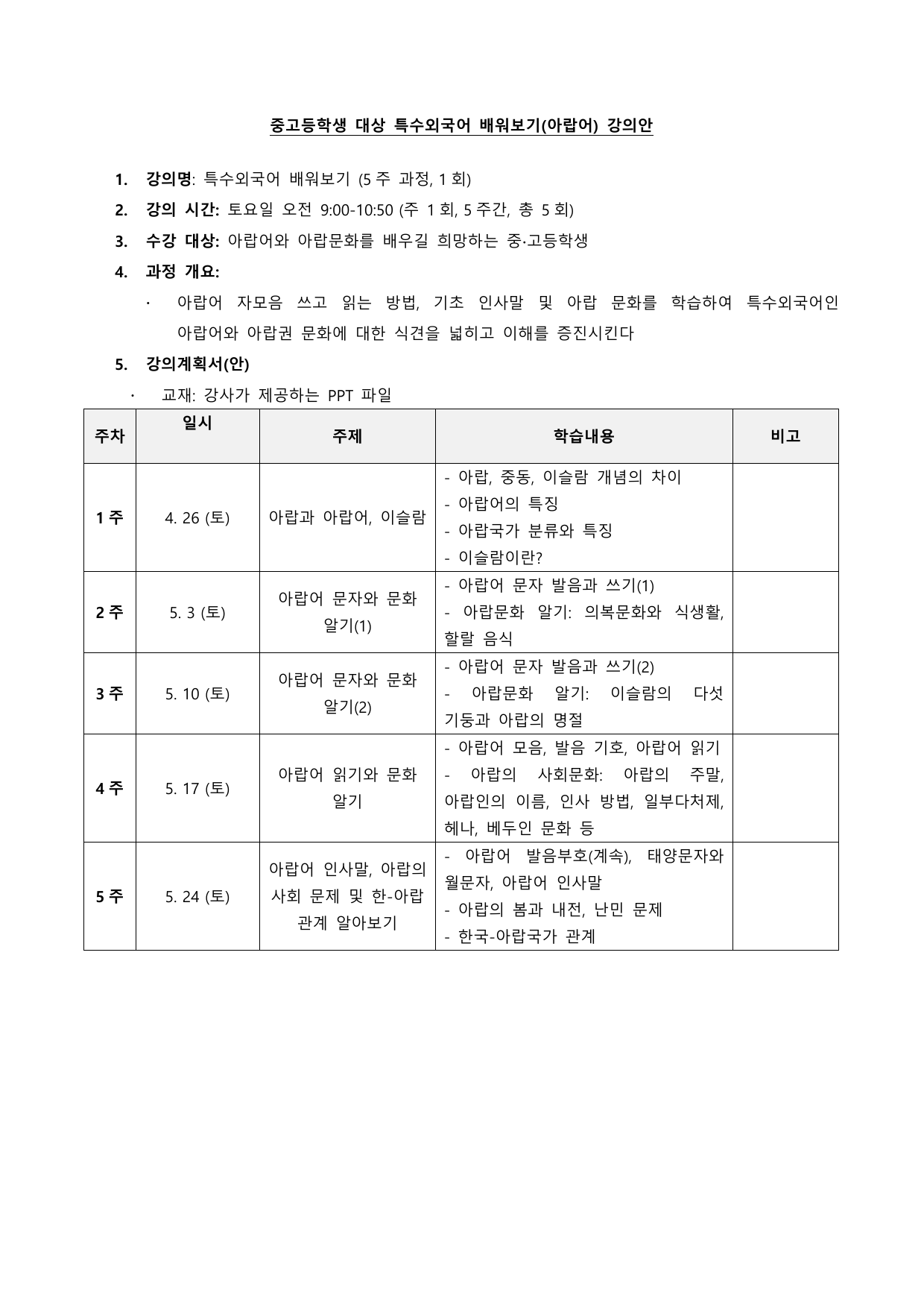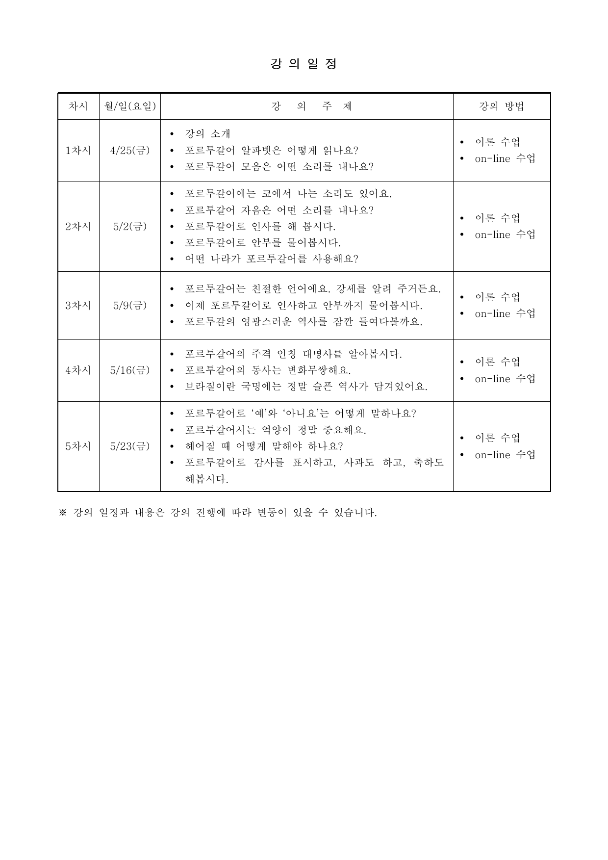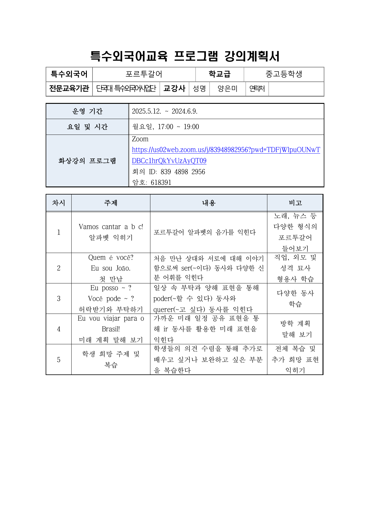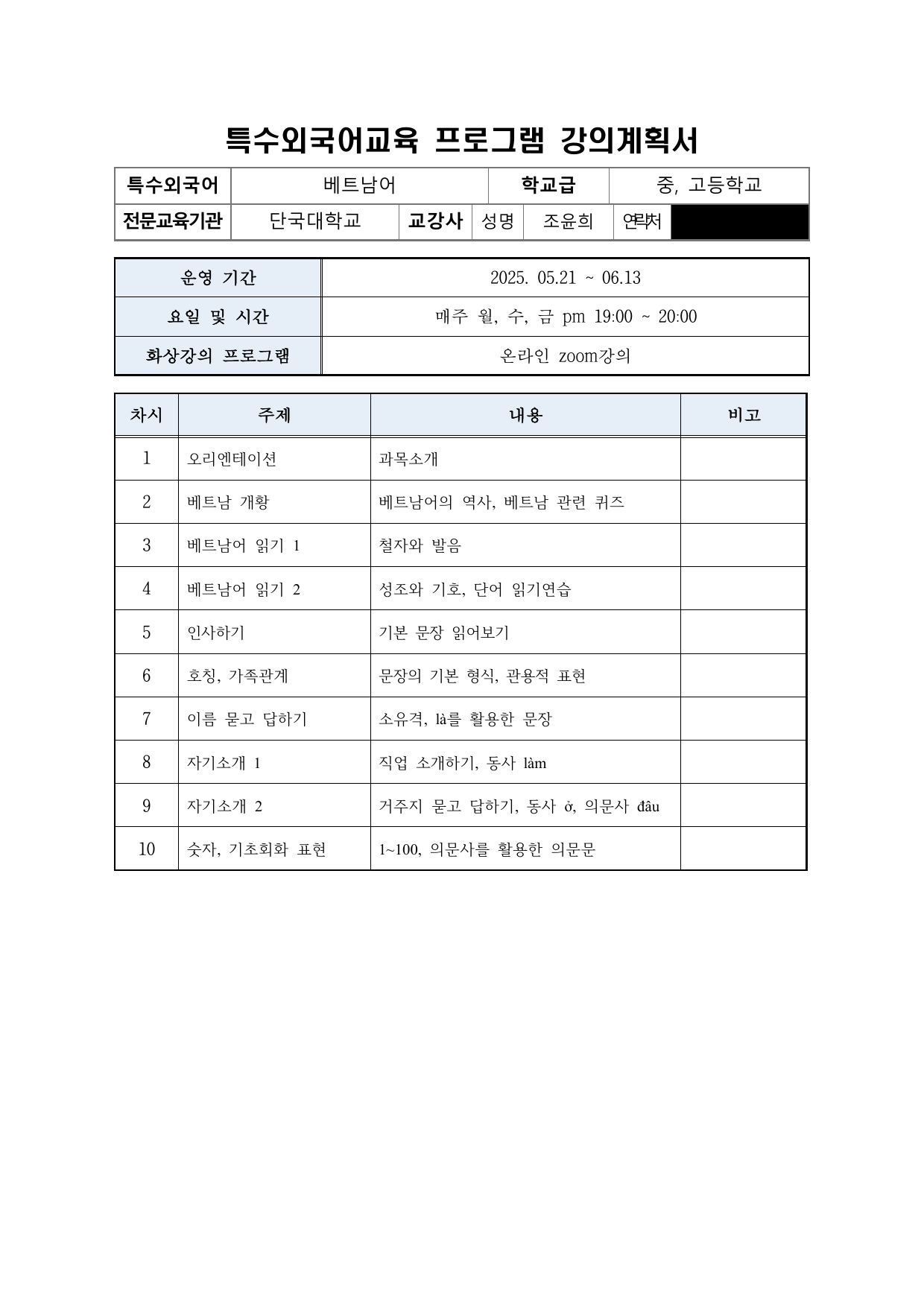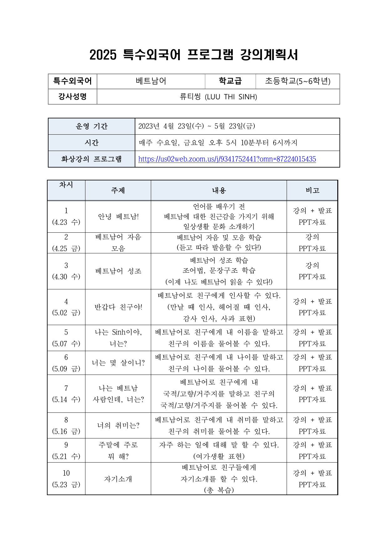 2025 상반기 단국대학교 특수외국어 배워보기 강의계획서 (1~12번 강의)