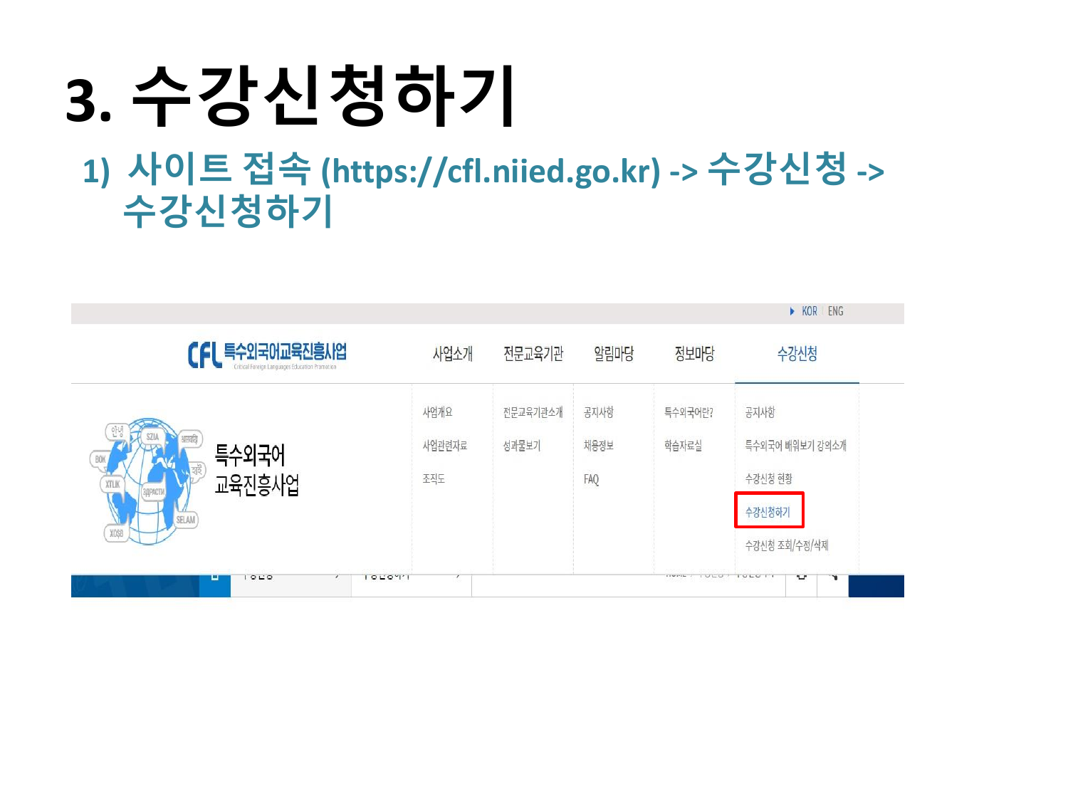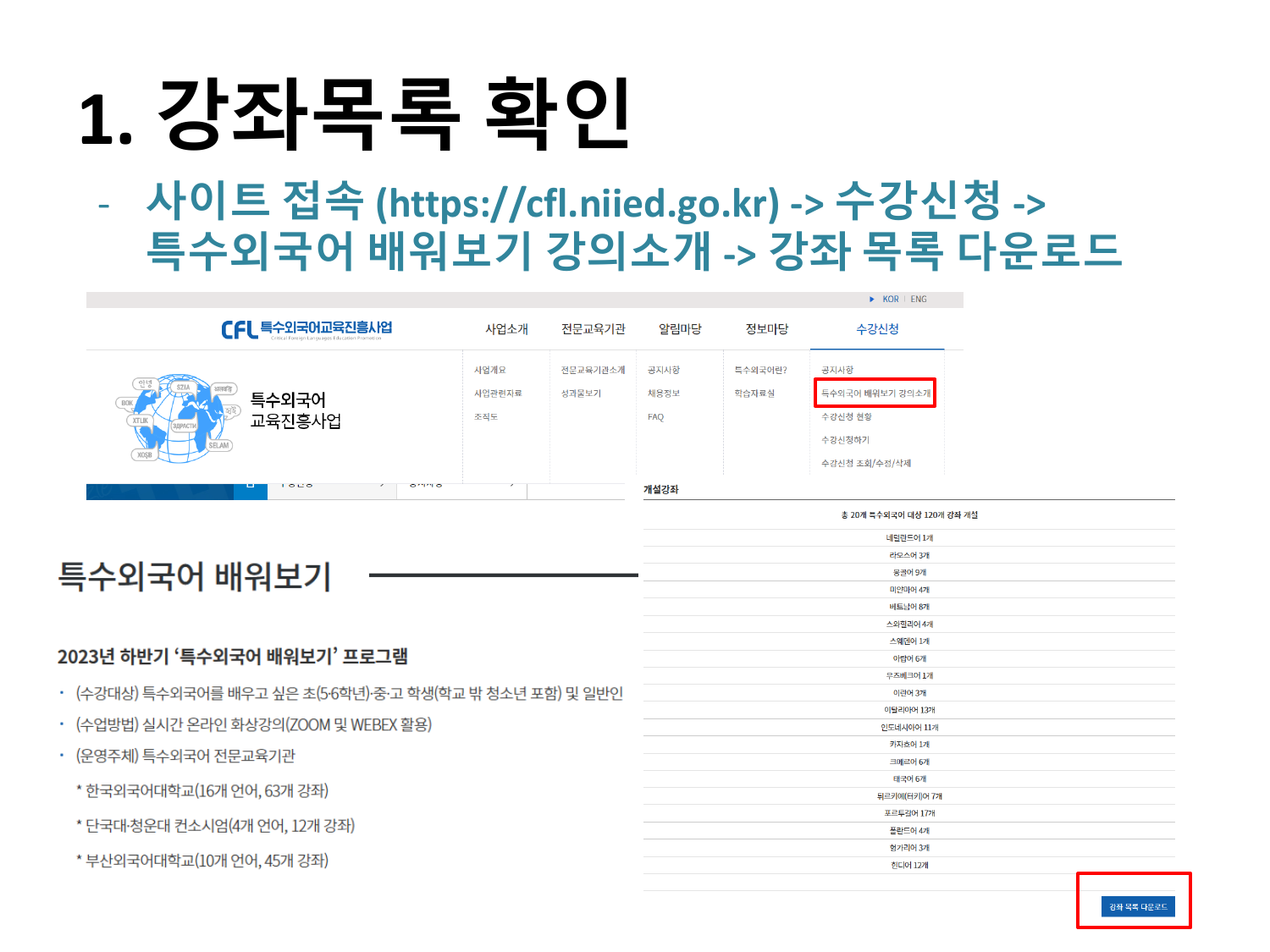 2023년 특수외국어 배워보기 수강신청, 이수증 다운로드 방법