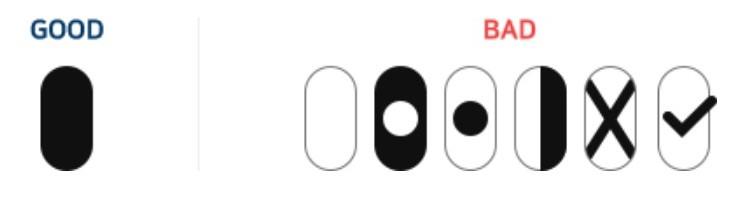 - 머리카락, 안경테 등으로 눈을 가리거나 모자 등으로 머리를 가리면 안 됨