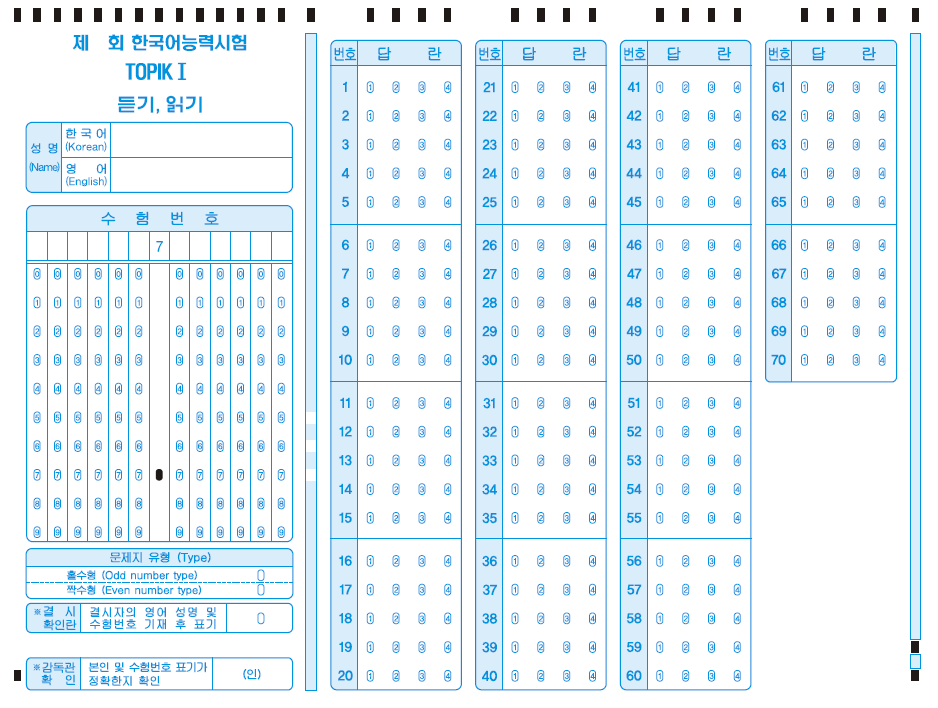 1. 토픽 Ⅰ 답안지 견본