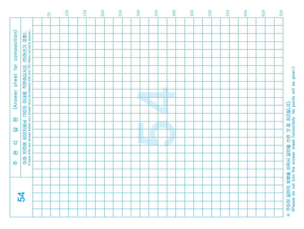 - 쓰기 답안은 가는 펜을 사용하여 반드시 정해진 답란 안에 작성하여야 하며, 정해진 답란을 벗어나거나 답란을 바꿔서 쓸 경우 점수를 받을 수 없습니다.