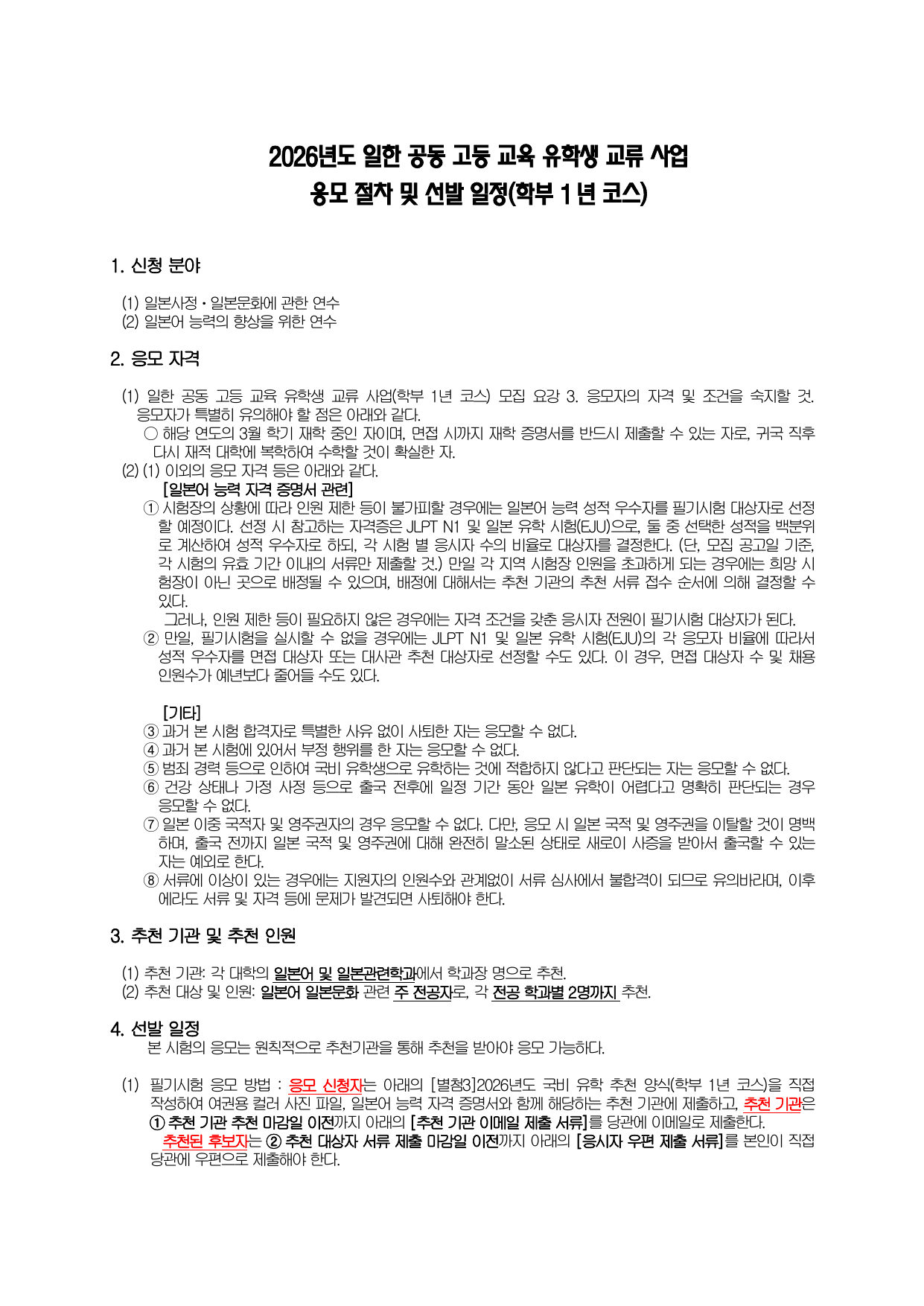 [붙임2] 2026년도 일본정부(문부과학성) 장학금 유학생 응모 절차 및 선발 일정(학부 1년 코스).pdf