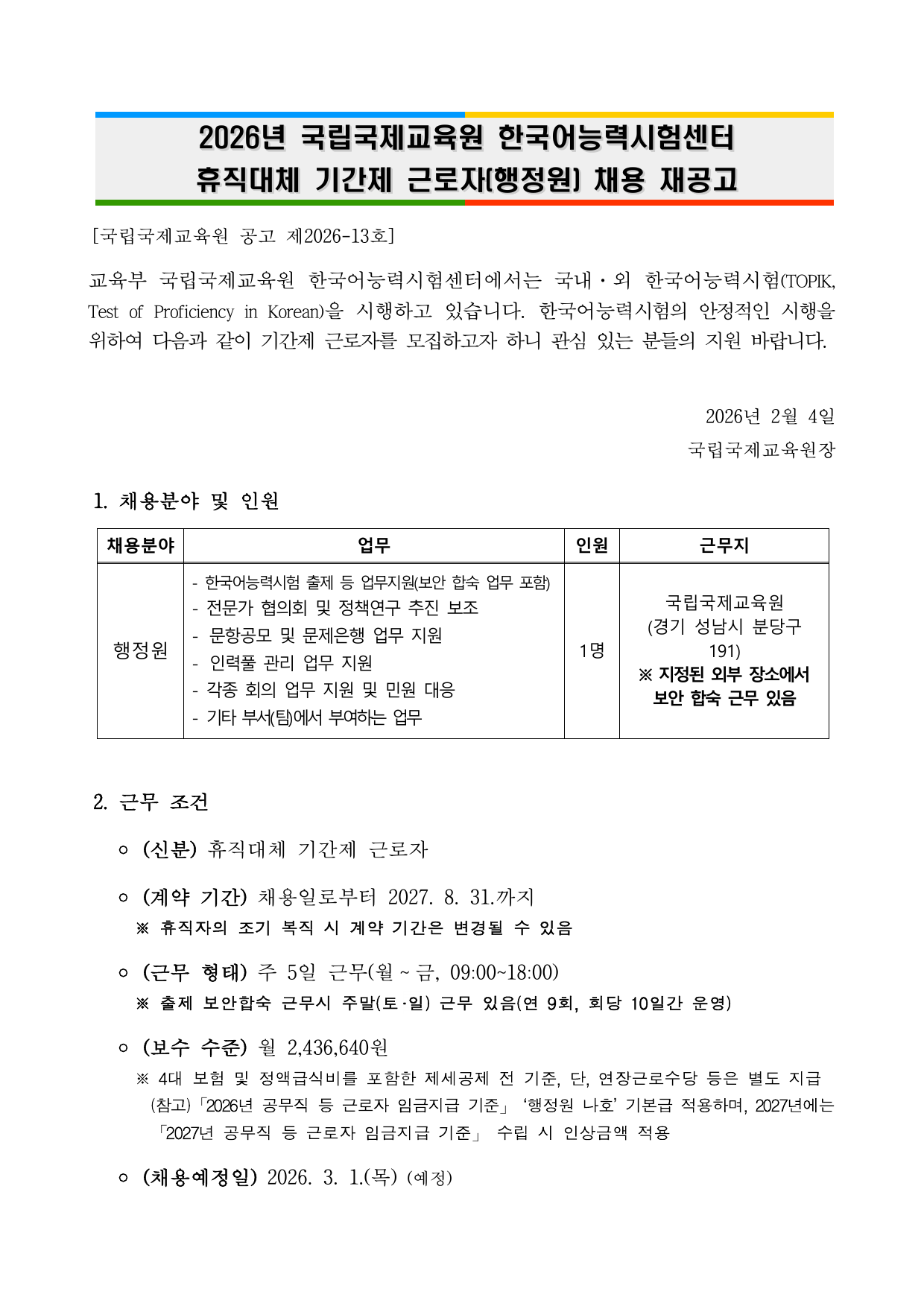 ★한국어능력시험센터 휴직대체 기간제근로자(행정원) 채용 재공고문_게시용.pdf