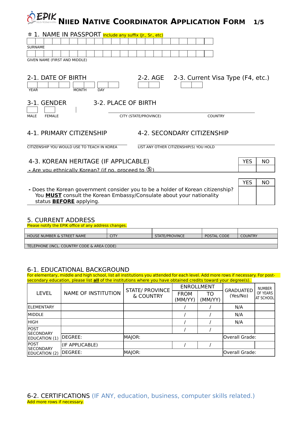 DOC문서2026년 외국어교육지원팀 원어민 기간제근로자 지원서 서식(영문) .docx